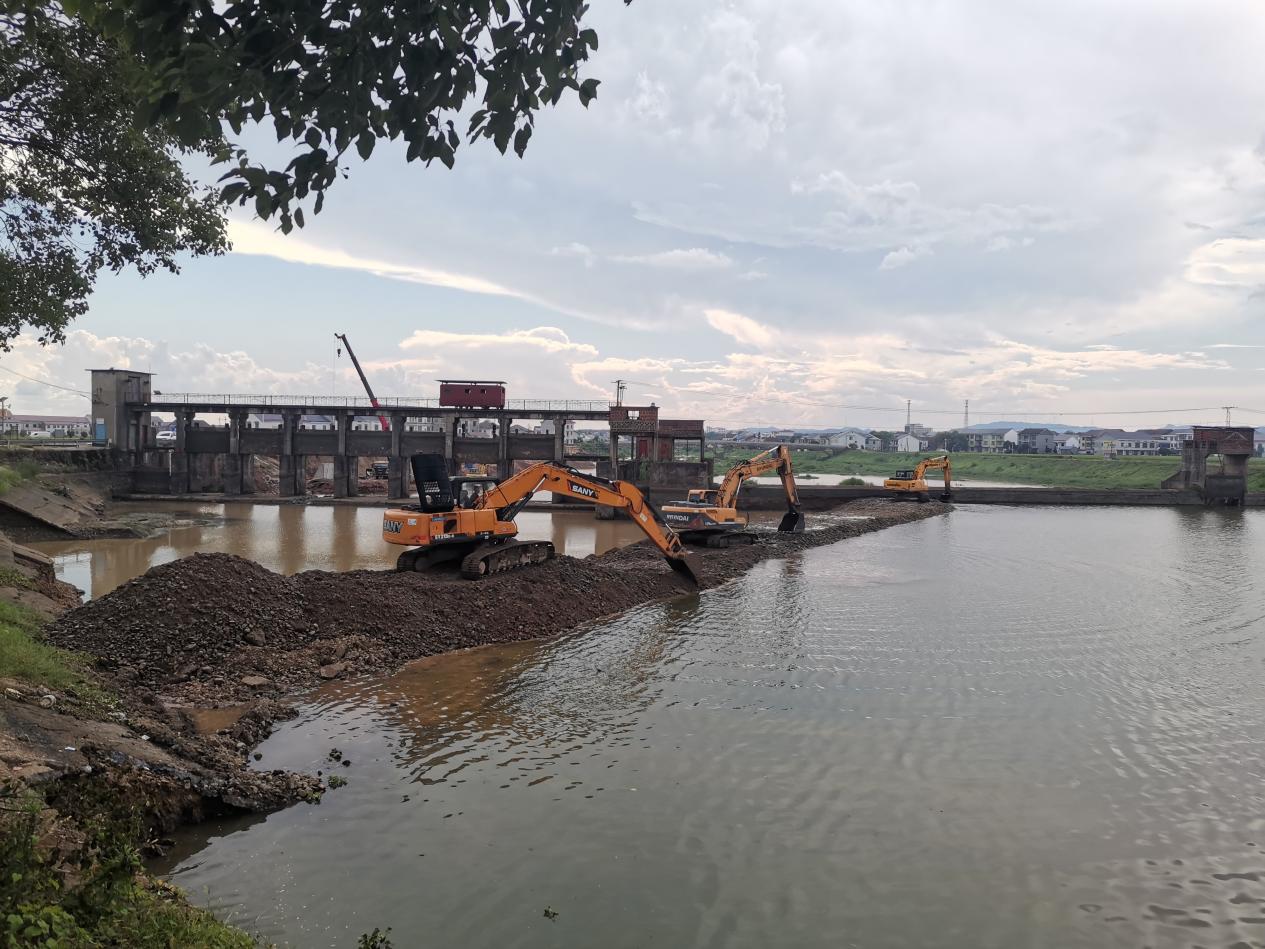 据了解,汛期攸河上游水位明显增高,酒埠江水库泄洪给项目前期施工作业带来诸多不便与安全隐患。施工单位密切关注天气预报和实时动态,实时关注攸河上游水位和附近短时降雨量,及时调整施工时间。主汛期过后,建设单位因地制宜及时实施围堰,创造安全施工条件。目前水闸主体老坝已基本拆除,下游两岸重力式挡墙开挖建设中,接下来会对水闸基础石方开挖,加快原有工程设施清除工作,为下一步工程建设创造有利条件。