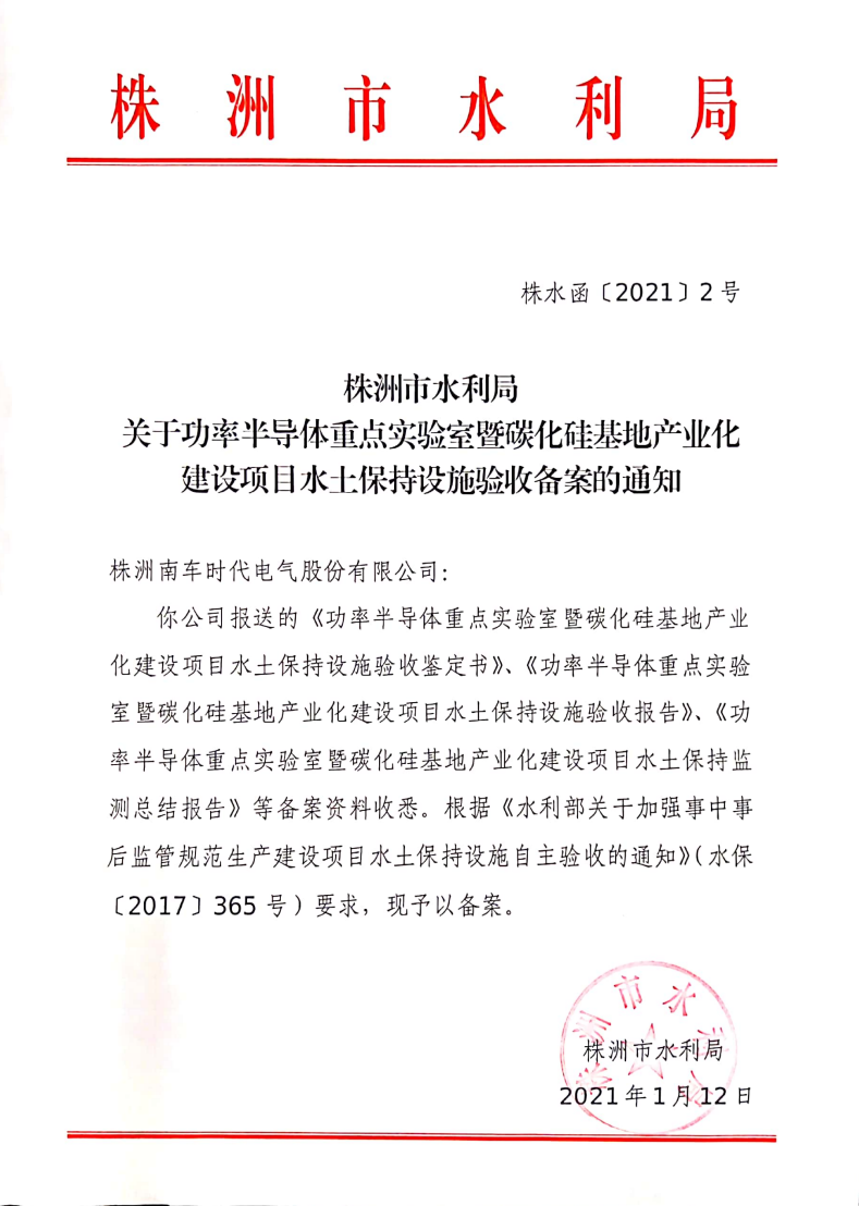 关于功率半导体重点实验室暨碳化硅基地产业化建设项目水土保持设施验收备案的通知