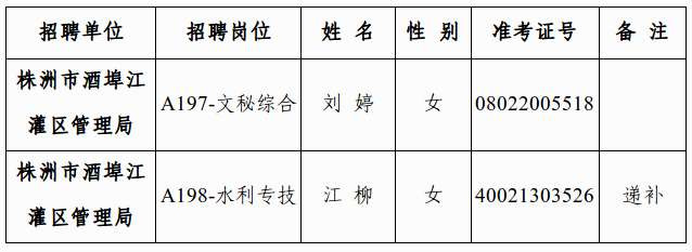 株洲市水利局所属事业单位2024年公开招聘拟聘用人员名单公示