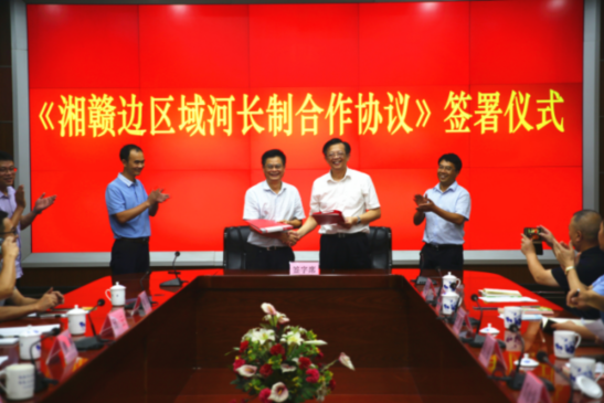 8月28日,省河长制工作委员会办公室与江西省河长办公室在南昌进行工作交流并签署《湘赣边区域河长制合作协议》(简称《协议》),共同推动湘赣边区域合作示范区建设战略合作框架落地见效,构建省级河长协作机制,实现流域联防联控。厅副巡视员杨光鑫、江西省河长办公室专职副主任姚毅臣参加。