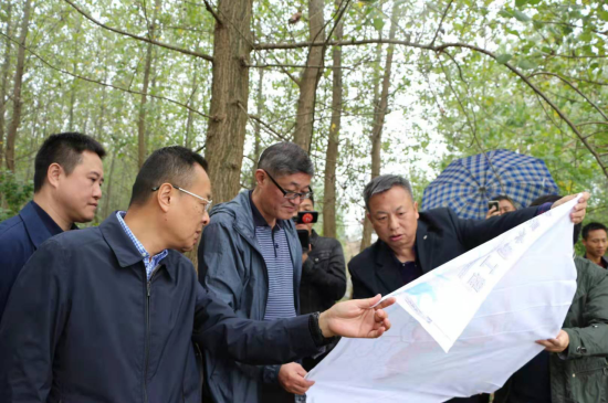 长江委水土保持局局长张光富(左三)在安乡县检查抗旱工作